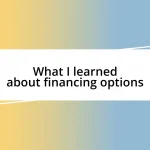 Posted inResidential Properties What I learned about financing options Key takeaways: Understanding financing options requires assessing personal financial goals and distinguishing between needs and wants.… 16/01/20256 minutes
